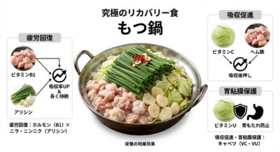 「もつ鍋」は究極の形?ニラやキャベツ(ビタミンC・アリシン)との相乗効果