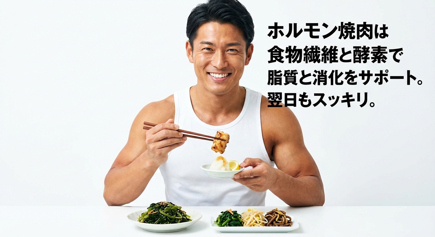 ホルモンを焼肉などで楽しむ際、どうしても気になるのが脂質と消化への負担です。これらをクリアにするためには、「食物繊維」と「酵素」を味方につけるのが正解です。食事の最初に食物繊維が豊富な海藻サラダやナムルなどを食べることで、脂質の急激な吸収を穏やかにし、血糖値の急上昇を抑えることができます。また、大根おろしやレモン汁と一緒に食べることも非常におすすめです。大根に含まれる消化酵素(アミラーゼやリパーゼなど)が脂質の分解を助け、レモンのクエン酸が胃液の分泌を促すとともに、鉄分の吸収を高めてくれます。さっぱりと食べられるだけでなく翌日に疲れや胃もたれを残さないための賢いテクニックです。